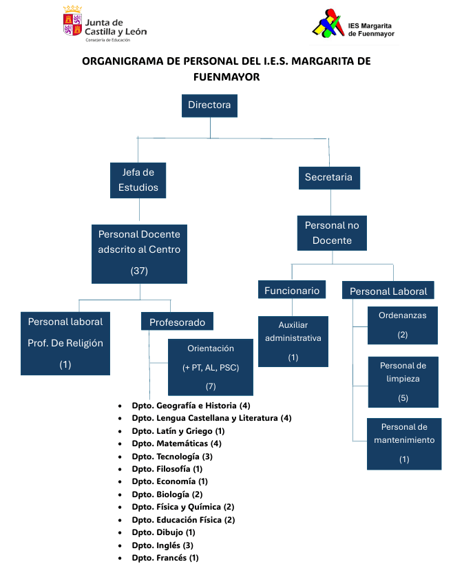 Dentro de la tarea asignada para la superación del Bloque III a continuación se muestra una imagen que representa el organigrama de centro que he realizado a partir de la realidad del I.E.S. Margarita de Fuenmayor (Ágreda, Soria).